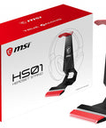 MSI HS01 Gaming Headset Stand 'Black with Red, Solid Metal Design, non slip base, Cable Organiser, Supports most headsets, Mobile holder'