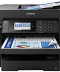 A3+ print, scan, copy and fax with this fast, feature-rich EcoTank. It offers a low cost per page, 550-sheet tray capacity and 50-sheet ADF. This feature-rich EcoTank makes light of A3+ tasks, while offering a low cost per page. A3+ jobs can be accomplished quickly thanks to fast print and scan speeds, two 250-sheet front trays, a 50-sheet rear feed, and a 50-sheet A3 ADF. Print how you like with mobile printing, Ethernet and a 10.9cm LCD touchscreen with hard keys. Get more done in less time Get the edge with this fast and efficient printer that can deliver a first page in as little as 5½ seconds1. Coupled with fast double-sided printing, and a high speed Automatic Document Feeder, you’ll be able to speed through everyday tasks. Feature-rich A3 EcoTank The ET-16600 is designed for A3 tasks with A3+ print, scan, copy and fax. It's easy to navigate the extensive range of features via the 10.9cm LCD touchscreen and hard keys. Keep on saving Save every time you print with this EcoTank that delivers an incredibly low cost per page. Unlike other printers, EcoTank features large ink tanks that you fill with low-cost ink bottles. End interuptions Minimising refills, this EcoTank can print thousands of pages before needing more ink, while the two A3 paper trays offer a capacity of 500-sheets. Free yourself from manual page loading with a generous 50-sheet rear feed and A3 ADF. Print from almost anywhere It's easy to print from mobiles, tablets and laptops using EcoTank. With Wi-Fi and Wi-Fi Direct, you can send documents to print from smart devices using the Epson iPrint app. Easy to use and reliable Filling the large front ink tanks is simple with the resealable, intuitive and drip-free ink bottles.The heat- free PrecisionCore printhead is renowned for its speed, quality, reliability and efficiency, and will last the lifetime of the printer.