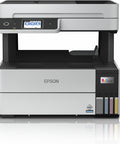This multifunction A4 printer delivers ultra-low printing costs and fast print speeds without the hassle of changing cartridges or toners. Designed for home offices and small businesses this feature-rich A4 printer with fax delivers an ultra-low cost per page and ultra-fast print speeds. Thanks to the 250-sheet front paper tray, 6.1cm LCD touchscreen and 35-page automatic document feeder, you can just keep on printing. Get more done in less time Take your home office to the next level with this ultra-fast and efficient printer that can deliver a first page in as little as 7 seconds1. Feature-rich A4 EcoTank Print, copy, scan and fax with the ET-5170 which features double-sided printing, a 250-sheet front paper tray and 35-page automatic document feeder. It's easy to navigate the extensive range of features with the 6.1cm LCD touchscreen. Keep on saving Making a saving every time you print with this EcoTank that delivers an incredibly low cost-per-page. Unlike other printers, EcoTank features large ink tanks that you fill with low-cost ink bottles. Business-quality printing The fast drying EcoTank 113 ink series features all pigment inks for smudge, water and highlighter resistant prints. From one set of replacement inks, you can produce up to 7,500 pages in black and 6,000 in colour Print from almost anywhere With Wi-Fi and Wi-Fi Direct, you can send documents to print from smart devices using the Epson iPrint and Smart Panel apps3. Easy to use and reliable Filling the ink tanks is simple with the resealable, intuitive and mess-free ink bottles. Epson’s unique Heat-Free PrecisionCore Technology offers improved reliability, reduced downtime and less environmental impact. No warm up time means the first page prints fast uses less power.