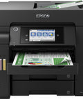This fast, multifunction EcoTank delivers a low cost per page. It offers a 500-sheet tray capacity, 50-sheet rear feed, and 50-sheet ADF. Print, scan, copy and fax will this easy-to-use EcoTank printer, that delivers an exceptionally low cost per page. A4 jobs can be accomplished quickly thanks to fast print and scan speeds, two A4 250-sheet front trays, a 50-sheet rear feed, and a 50-sheet A4 ADF. Print how you like with mobile printing, Ethernet and a 10.9cm LCD touchscreen. Get more done in less time Get the edge with this fast and efficient printer that can deliver a first page in as little as 5½ seconds1. Coupled with fast double-sided printing, and a high speed Automatic Document Feeder, you’ll be able to speed through everyday tasks. Feature-rich A4 EcoTank The ET-5800 is designed for A4 tasks with A4 print, scan, copy and fax. Selecting features is easy with the LCD touchscreen. Keep on saving Save every time you print with this EcoTank that delivers an incredibly low cost per page. Unlike other printers, EcoTank features large ink tanks that you fill with low-cost ink bottles. End interuptions Minimising refills, this EcoTank can print thousands of pages before needing more ink, while the two paper trays offer a capacity of 500-sheets. Free yourself from manual page loading with a generous 50-sheet rear feed and A4 ADF. Print from almost anywhere It's easy to print from mobiles, tablets and laptops using EcoTank. With Wi-Fi and Wi-Fi Direct, you can send documents to print from smart devices using the Epson iPrint2 app. Easy to use and reliable Filling the large front ink tanks is simple with the resealable, intuitive and drip-free ink bottles.This printer uses the heat-free PrecisionCore printhead, that's renowned for its speed, quality, reliability and efficiency, and will last the lifetime of the printer.