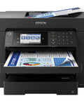 Think big with this high-quality multifunction with single and double-sided printing, scanning and fax all up to A3+. You’ll stride through tasks with print speeds of up to 25ppm¹ in black and a 50 page A3+ automatic document feeder (ADF). And that’s not forgetting its cost-effective inks and flexible wireless connectivity solutions such as and Scan-to-cloud/ Professional A3+ printing This A3+ multifunction printer will meet the needs of even the most demanding home office and small office users. It offers double-sided (duplex) printing, scanning and faxing all up to A3+, plus its automatic document feeder can process up to 50 double-sided A3+ pages. Furthermore, its PrecisionCore printhead produces high-quality, laser-like prints. Enhance your productivity This efficient, reliable and fast model offers A3+ double-sided printing and print speeds of 25ppm in black and 12ppm in colour¹. It’s also simple to operate directly thanks to its intuitive user interface and 6.8cm touchscreen. Minimise your outgoings Dramatically reduce your costs; this printer is compatible with individual inks which are are 50% more efficient compared to tri-colour cartridges³. Giving great value for money, cartridges are available in standard, XL and XXL, with the highest yield delivering up to 1,100 pages. Flexible wireless solutions Print from anywhere in the office with Wi-Fi connectivity or use Wi-Fi Direct to print from compatible wireless devices without a Wi-Fi network. Epson's free mobile printing apps and solutions provide further versatility; Email Print allows you to send items to print from almost anywhere in the world². And with Scan-to-Cloud, you can enjoy the benefits of collaborative working².