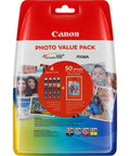 Enjoy the convenience of a value pack that bundles black, cyan, magenta and yellow CLI-526 9ml ink tanks with 50 sheets of 4” x 6” Photo Paper Plus Glossy II for your PIXMA.