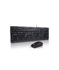 The Essential Wired Keyboard and MouseThe Lenovo Essential Wired Combo keeps things uncomplicated. This durable keyboard and mouse plugs into any USB port with wired reliability you can count on. The tough waterproof membrane can handle accidental spills without risking performance. Enjoy feel-good typing with quiet keys and number pad in a modern space saving layout. An ergonomic full-size mouse offers comfort and support for all-day use. Increase your productivity as you smoothly complete tasks with the 1000dpi high resolution optical sensor. Highlights:Wired reliability: uncomplicated wired connection is plug and play Tough: waterproof membrane is tough enough to handle accidental spillsLED indicators: Caps Lock and Num Lock LED indicators Features:Low-profile, island-style keysLED indicators (Caps Lock, Num Lock)FN Media Controls (Volume Up, Volume Down, Mute, Play/Pause, Media Forward, Media Back)Adjustable feet1000 dpi high-resolution optical sensor1-year warranty