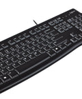 This USB wired keyboard and mouse combo is built to last in busy school settings. Students enjoy comfortable keys, a standard and familiar layout with full-size F keys and a number pad. Durable keys last up to 10 million keystrokes. The silicone cover tightly wraps the entire keyboard to provide a liquid barrier tested to withstand frequent cleaning and disinfecting for safe, shared use. Bold, bright white characters ensure all students—even those with less-than-perfect vision—can easily read them. Ambidextrous optical mouse delivers smooth tracking for all-day use by left- and right-handed students. Out-of-the-box compatibility. [1,2] [1] Number lock key excluded from 10 million keystroke life. [2] Tested to withstand 2,700 wipe cycles with alcohol; equal to 5 classroom sessions per day, 180 classroom days per year over 3 years.