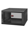 Ideal for retail, healthcare, and educational facilities, this wall mount rack offers an efficient solution for deploying server and networking equipment for edge computing applications. This rack enclosure is wall mountable, ideal for areas with limited floor space, and is designed specifically for servers and network switches and patch panels. The cabinet's door is reversible and is compatible with APC's Netbotx security upgrade to provide remote access, video surveillance, and environmental monitoring (sold separately). Optional 120V fan tray can be top or bottom mounted (sold separately) Both the top and bottom feature knockouts of 1/2U mounting space for accessories. And several APC Smart-UPS models low-profile provide easy UPS integration and mounting 6U Wall mount cabinet, mounting depth range of 2.87 to 20.8 inches, 200lb weight capacity, 19 rack width, ships fully assembled, ventilated with accessory integration options, 5 year APC warranty