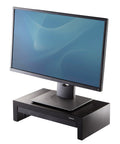 Fellowes Computer Monitor Stand with 3 Height Adjustments - Designer Suites Monitor Riser with Storage Tray - Ergonomic Adjustable Monitor Stand for Computers - Max Weight 18KG/Max Size 21" - Black/Pearl