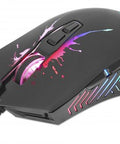 Manhattan Gaming Mouse with LEDs, Wired, Seven Button, Scroll Wheel, 7200dpi, Black with LED lighting, Three Year Warranty