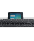 Enjoy exceptional typing on your computer, smartphone, and tablet -- all from one fully equipped and beautifully finished keyboard. The K780 Multi-Device redefines what a desktop keyboard can do, letting you switch typing easily between all the devices you enter text on.* It connects to three devices at once so you can write an email on your computer, then reply to a message on your phone with the same keyboard, at the touch of an Easy-Switch™ button. Enjoy comfortable, fluid typing on quiet PerfectStroke™ keys. It works with Windows, Mac, Android and iOS and features an integrated rubber cradle to hold your mobile device at a perfect angle and within reach. Choose to connect with a Logitech Unifying™ USB receiver or Bluetooth Smart technology. Two year battery life from two pre-installed AAA batteries. *USB-equipped or Bluetooth® Smart ready device that supports an external keyboard (HID profile).