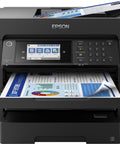 Think big with this high-quality multifunction with single and double-sided printing, scanning and fax all up to A3+. You’ll stride through tasks with print speeds of up to 25ppm¹ in black and a 50 page A3+ automatic document feeder (ADF). And that’s not forgetting its cost-effective inks and flexible wireless connectivity solutions such as and Scan-to-cloud/ Professional A3+ printing This A3+ multifunction printer will meet the needs of even the most demanding home office and small office users. It offers double-sided (duplex) printing, scanning and faxing all up to A3+, plus its automatic document feeder can process up to 50 double-sided A3+ pages. Furthermore, its PrecisionCore printhead produces high-quality, laser-like prints. Enhance your productivity This efficient, reliable and fast model offers A3+ double-sided printing and print speeds of 25ppm in black and 12ppm in colour¹. It’s also simple to operate directly thanks to its intuitive user interface and 6.8cm touchscreen. Minimise your outgoings Dramatically reduce your costs; this printer is compatible with individual inks which are are 50% more efficient compared to tri-colour cartridges³. Giving great value for money, cartridges are available in standard, XL and XXL, with the highest yield delivering up to 1,100 pages. Flexible wireless solutions Print from anywhere in the office with Wi-Fi connectivity or use Wi-Fi Direct to print from compatible wireless devices without a Wi-Fi network. Epson's free mobile printing apps and solutions provide further versatility; Email Print allows you to send items to print from almost anywhere in the world². And with Scan-to-Cloud, you can enjoy the benefits of collaborative working².